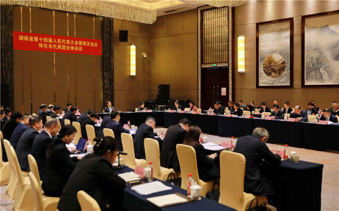 On the morning of February 4, the Huaihua City delegation held its fourth plenary meeting to continue deliberating the government work report and reviewing the draft outline of the 15th Five-Year Plan. Xu Zhongjian, the delegation leader presided over the meeting, with deputy leaders Wei Zhaohui and Li Wanqian in attendance.