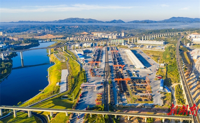 The aerial photo, taken on October 7, shows the hustle and bustle scene of a cargo yard at the Huaihua International Land Port. Huaihua is a member of the "13+2" inter-provincial coordination and cooperation mechanism for the New International Land-Sea Trade Corridor in the western region and Hunan's sole freight hub connecting to ASEAN. The Huaihua International Land Port has established seven major international logistics channels, including the Beibu Gulf rail-sea intermodal transport and routes to Laos and Vietnam. (Photo/Tian Wenguo)
