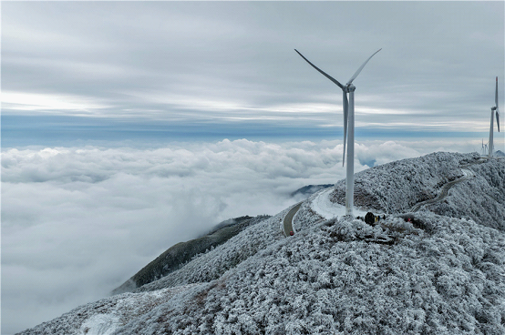In Xihuang Mountain of Zhijiang County, a rare spectacle of wind-driven rime and sea of clouds has also unfolded. With an altitude of 1,405 meters, the Golden Summit, the main peak, is the highest point in Zhijiang. Its high elevation and sound ecological environment provide ideal conditions for rime formation.