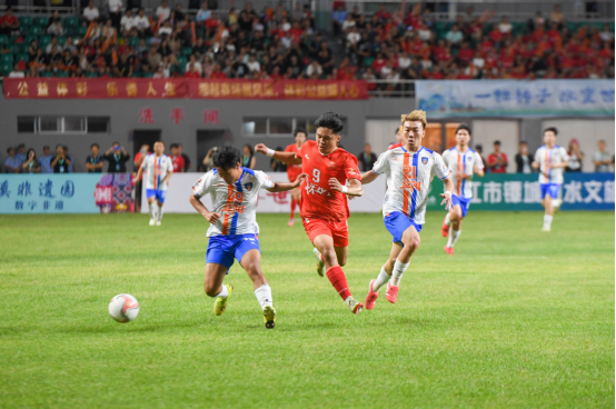 At 7:38 p.m., with the sound of the referee’s whistle, the match officially kicked off. Yiyang team scored the first goal in the first half, taking a 1-0 lead. After the break, the lagging Huaihua side adjusted their tactics and launched relentless attacks. Their persistence paid off in stoppage time when they netted their first goal in “Xiang Chao”, securing a dramatic 1-1 draw with a last-gasp equalizer against Yiyang.