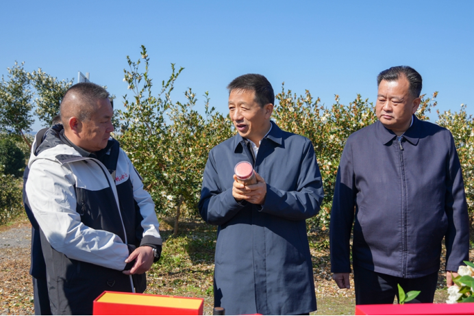 At the camellia oleifera base in Lishu Village, Qijiaoping Town, Xu learned about how rich farmers financially helped their poor town-fellows. According to him, great efforts will be made to vigorously develop rural industries that enrich the people, improve the mechanism which helps link farmers to industries and thus boost their prosperity, enabling more rural households to share the dividends of industrial development. After learning about the planning and construction of the town proper in Qijiaoping Town, he emphasized the need to strive to enhance the carrying capacity of small towns, so as to better promote integrated urban-rural development and comprehensive rural revitalization.