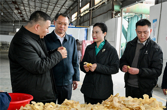 Visiting Huaihua Shuangding Smelting Co., Ltd., Xinhuang Peilin Borneol Daily-use Cosmetics Co., Ltd., and Xinhuang Laocai Food Co., Ltd., Wei Zhaohui learned in detail about their production and operations, product development and related industrial developments. At the Hunan Dongxiang Polygonatum Industry Park, the Xinhuang Cinnabar Mine National Industrial Heritage site, and the Polygonatum planting and seedling demonstration base in Dongpo Village, Huangzhou Town, she was briefed on the development of the Chinese medicinal materials industry and the protection, development and utilization of cultural relics.