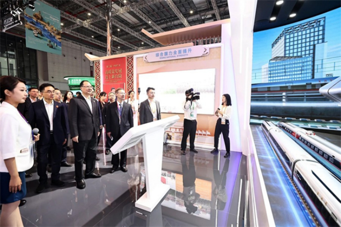 Within the China Pavilion, Hunan-based highlights like Sany's No. 18 Lighthouse Factory, CRRC Zhuzhou Locomotive, and Shibadong Village attracted numerous foreign attendees. Governor Mao noted that efforts should be made to focus on national priorities, leverage Hunan's strengths, and lead the wave of innovation, enabling more "Made in Hunan" products to represent China and shine on the global stage.