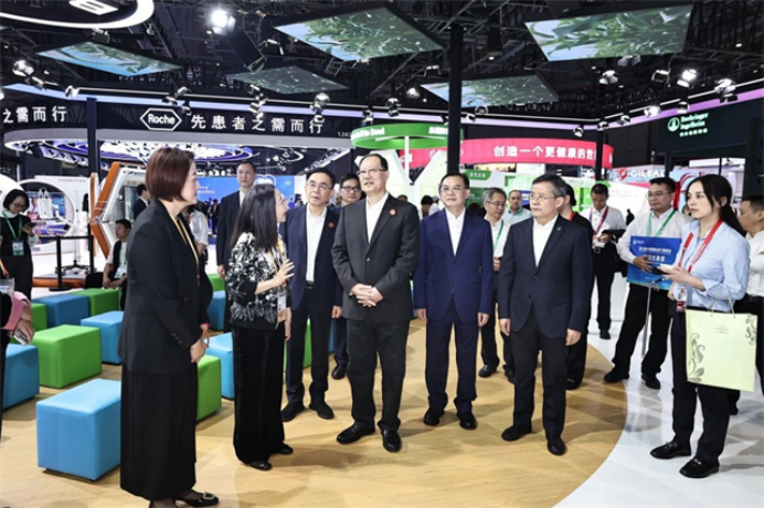 Governor Mao visits the Novartis Exhibition Booth.