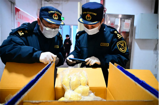 Recently, 23.3 tonnes of Thailand's frozen durian pulp arrived at the Huaihua International Land Port, completing the imported cold-chain food inspections under the supervision of the Huaihua Customs Authority. This marked a critical milestone of the Huaihua International Land Port in expanding its cross-border cold-chain transportation service.