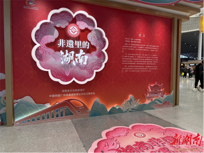 An exhibition titled "Exploring Hunan's Intangible Cultural Heritage" kicked off at the Changsha South Railway Station on February 2. The event is jointly organized by the Hunan Provincial Department of Culture and Tourism and the Changsha South Railway Station of the China Railway Guangzhou Group Co., Ltd.