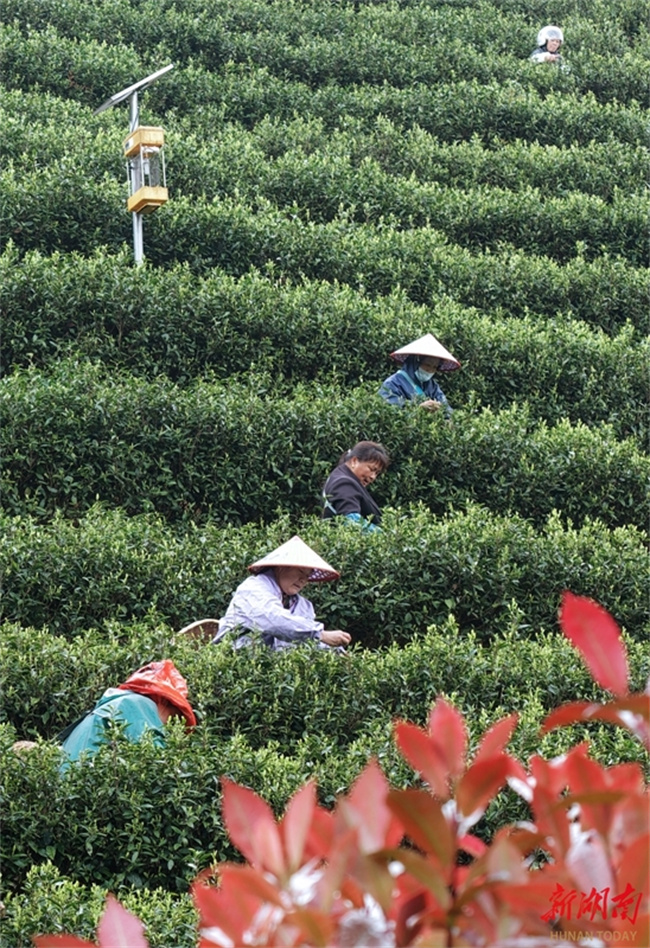Villagers pick tea leaves ahead of the Qingming Festival to produce the Mingqian (literally "pre-Qingming") tea in a tea garden in Guidong County. As the Qingming Festival comes, local tea gardens have entered the harvest season for spring tea. Tea farmers are racing against time to pick and process fresh tea leaves to supply the market. (Photo/Deng Renxiang)